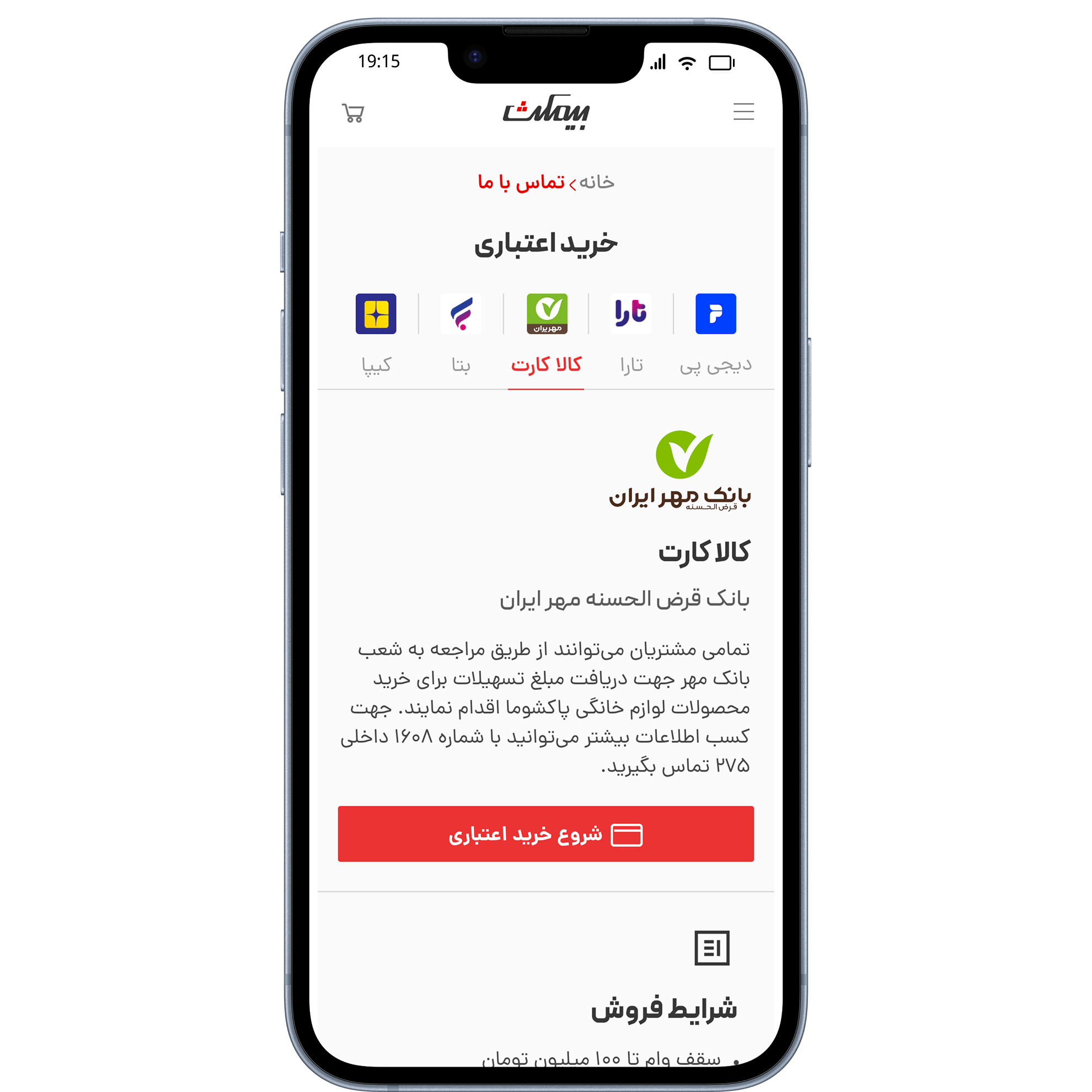 روشهای پرداخت مشتریان بیمکث را به سه دسته تقسیم کردیم: پرداخت آنلاین، خرید اعتباری آنلاین (پرداخت اقساطی) برای مشتریان سایت و خرید اعتباری حضوری که هر یک در محل مناسب قرار گرفت.