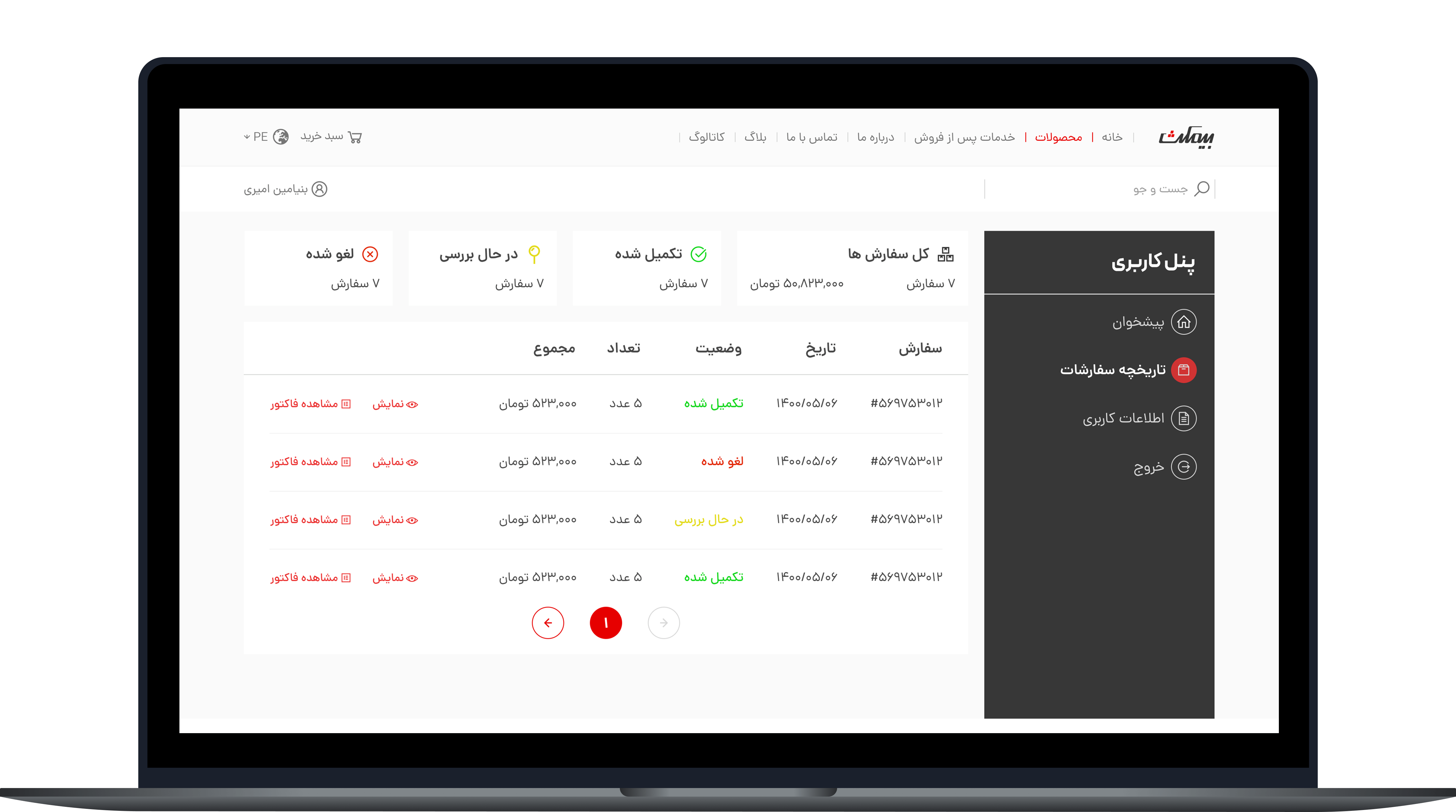 با دسته بندی محصولات و به کار بردن آیکونها و تصاویر مناسب در طراحی این وب سایت فروشگاهی تلاش کردیم که پیدا کردن و مشاهده اطلاعات محصول مورد نظر برای کاربر آسانتر شود.