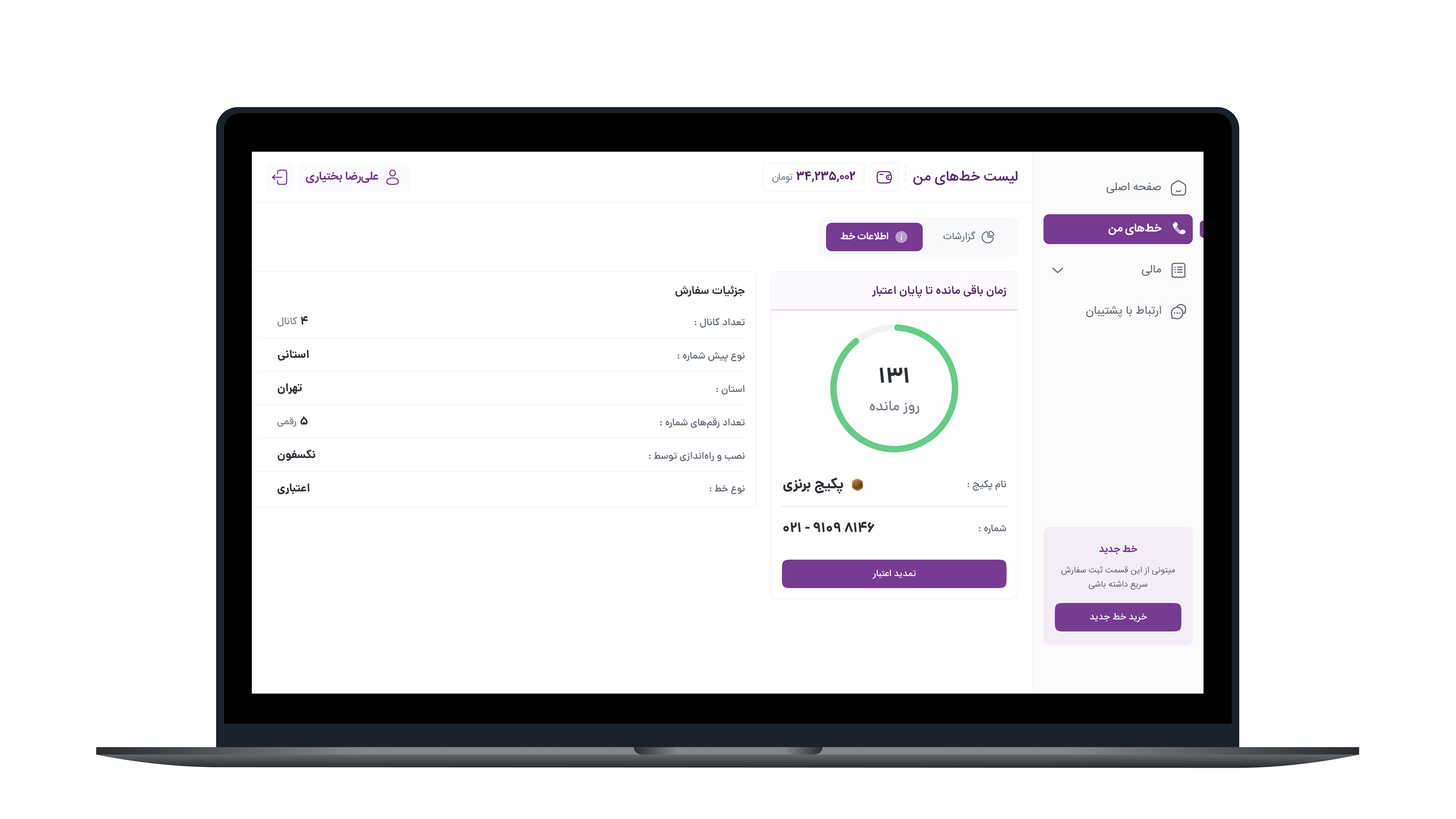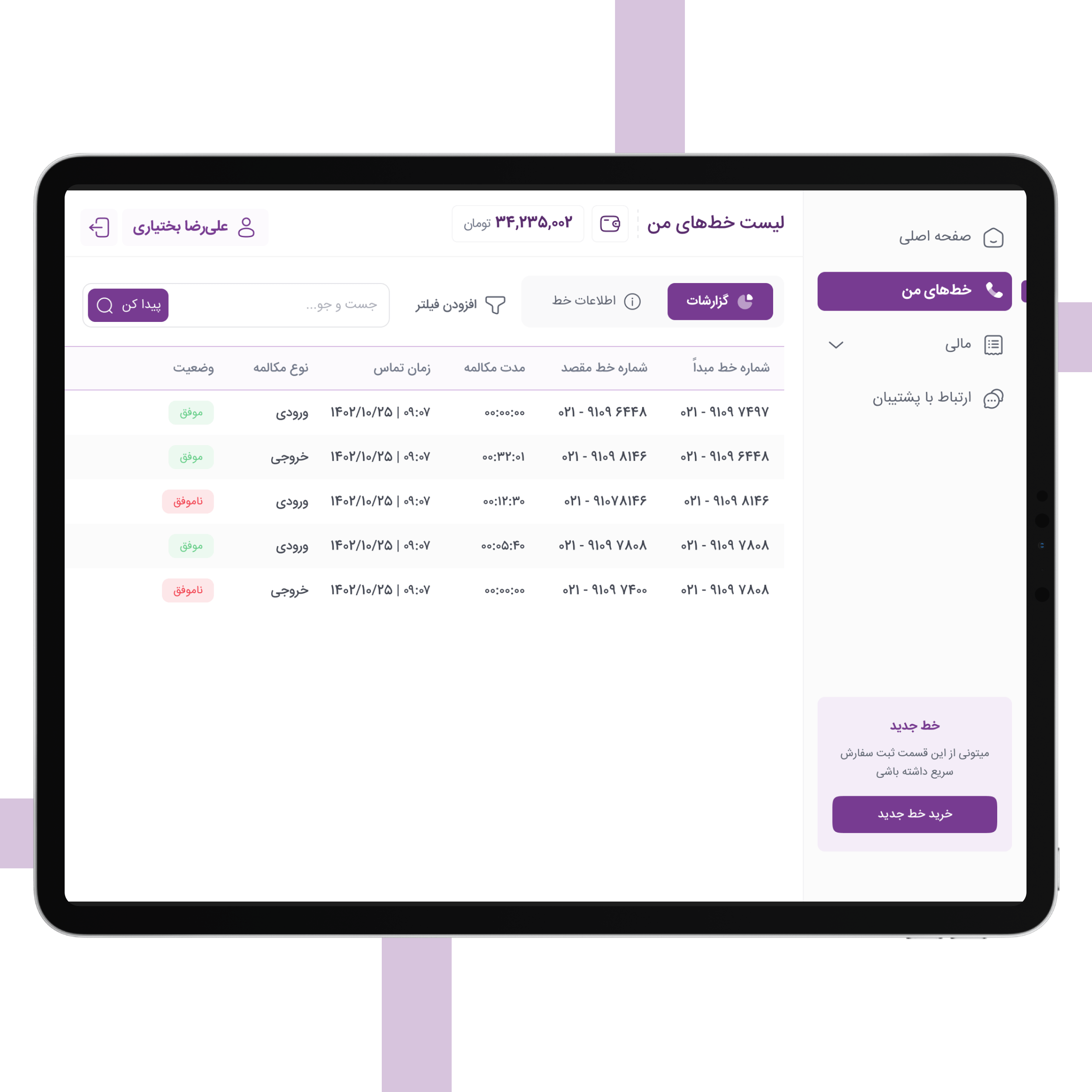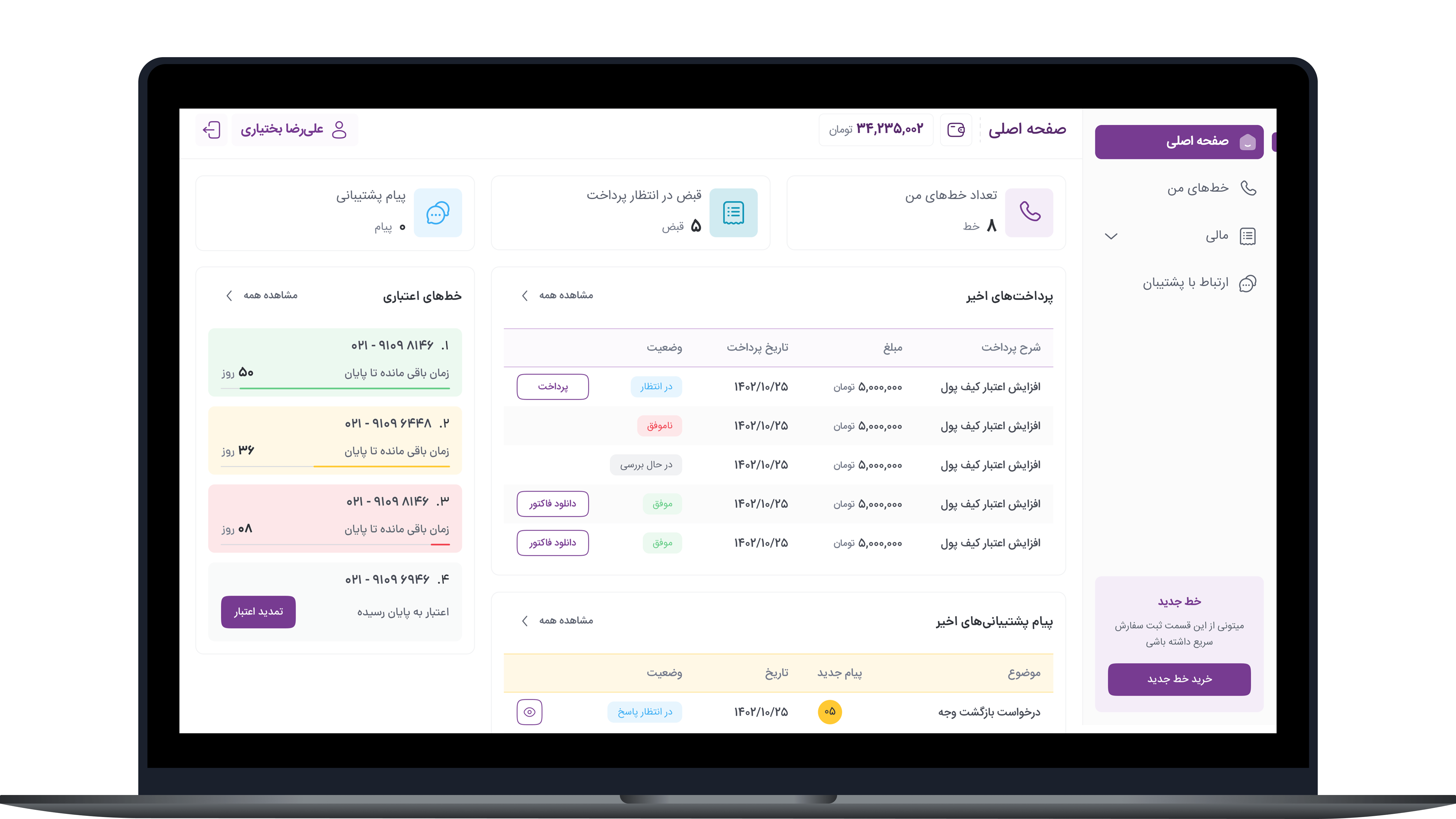 ما یه داشبورد ساده طراحی کردیم که کاربران بتونن به سرعت خطوطشون رو ببینن، فعال یا غیرفعال کنن و تنظیمات هر خط رو به راحتی تغییر بدن.