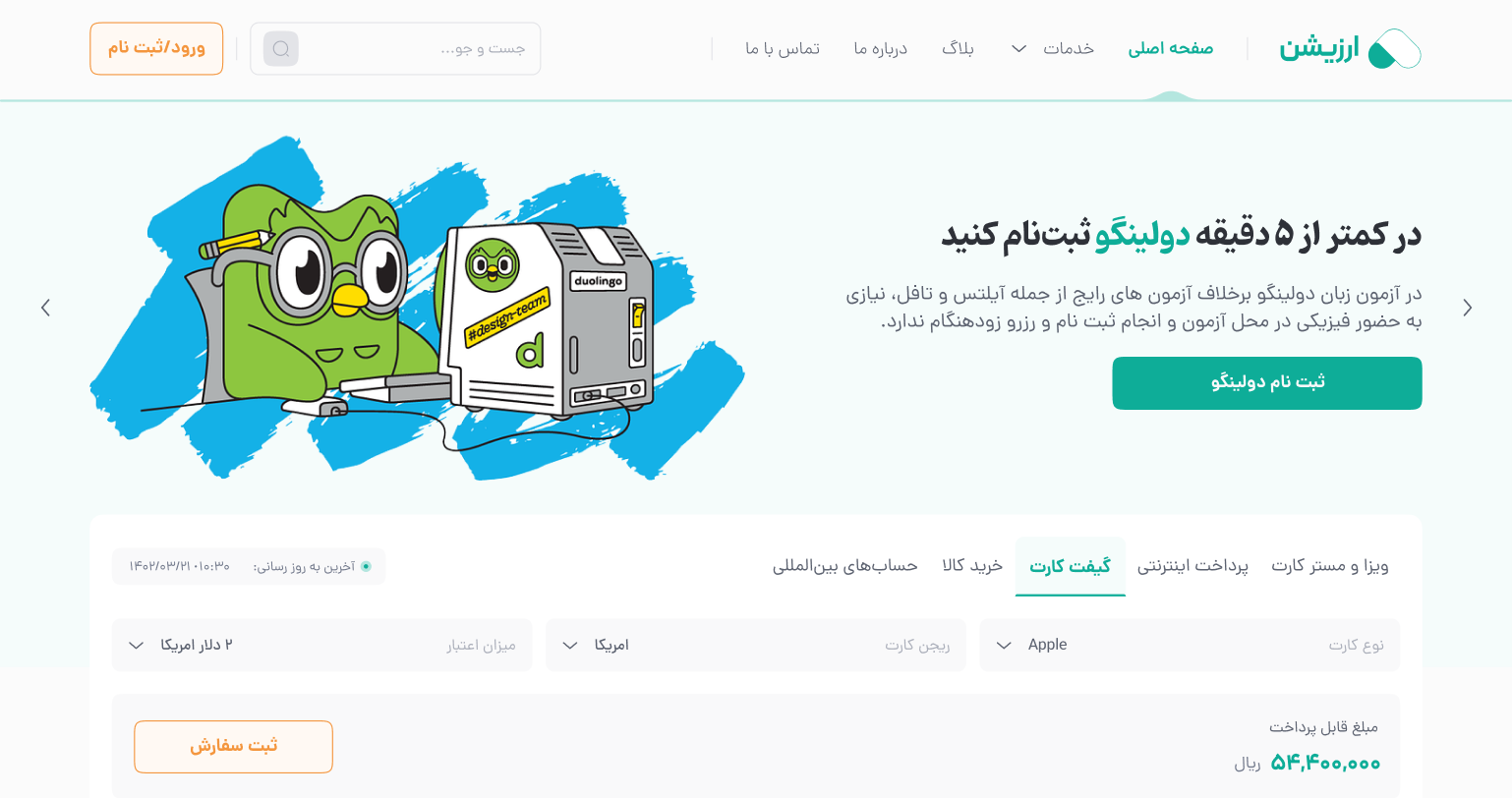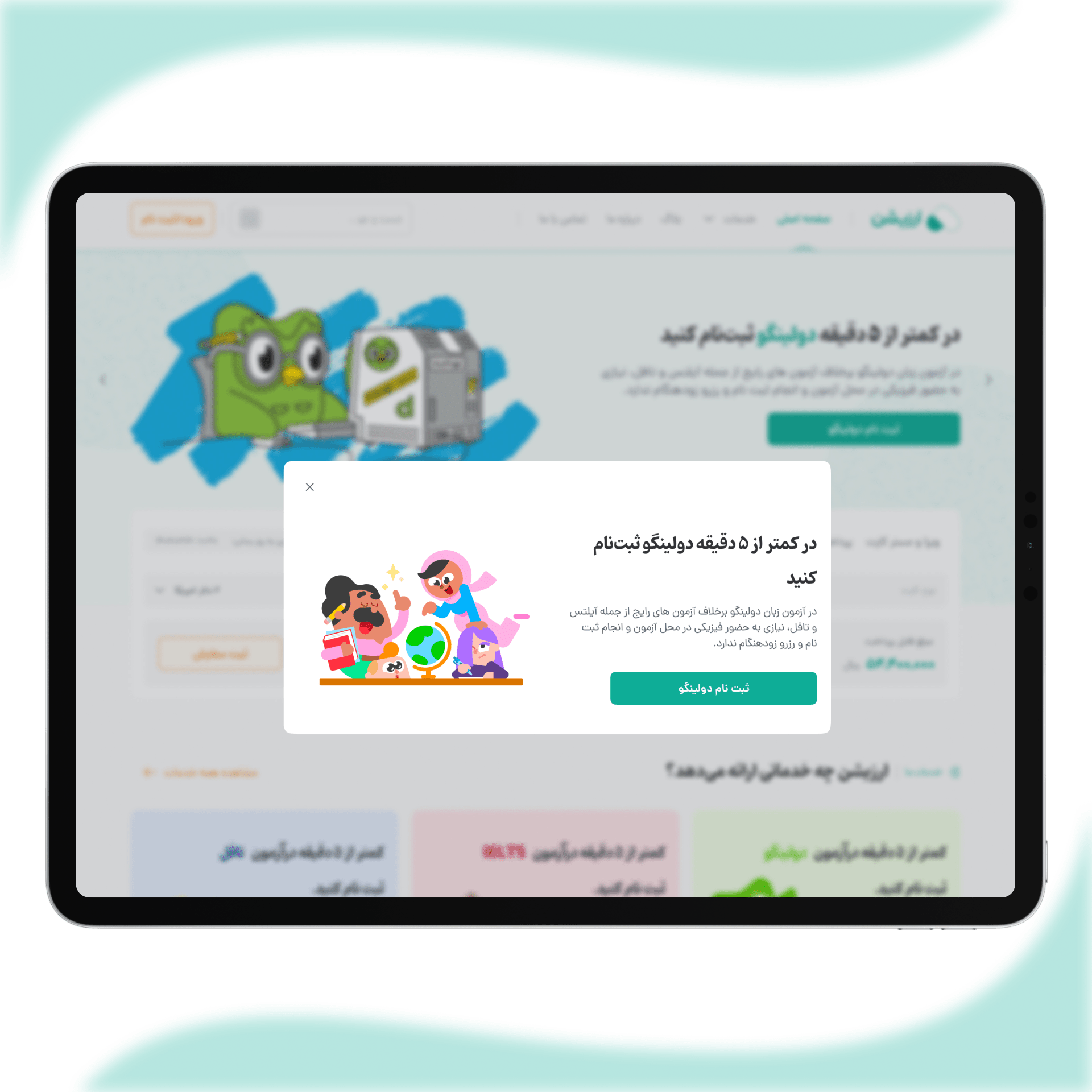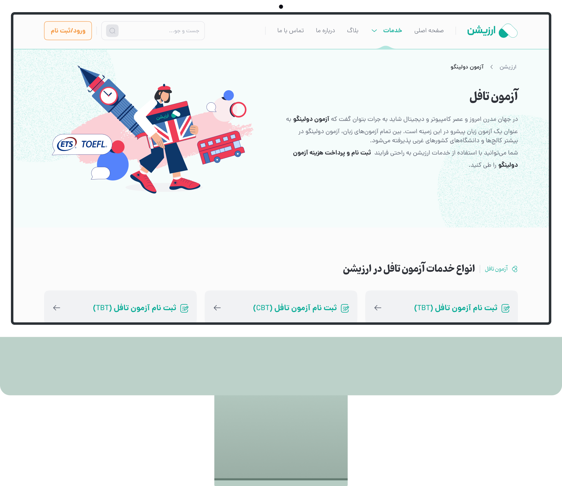ارزیشن پلتفرمی برای پرداختهای دانشجویی بینالمللی است که تمرکز ویژهای بر سادهسازی فرآیند پرداخت آزمونهایی مانند تافل، GRE و دولینگو دارد. ما در طراحی سایت ارزیشن تلاش کردیم یک تجربه کاربری ساده، هدفمند و مبتنی بر ساختار خدمات محور ایجاد کنیم. در کنار این وبسایت، داشبورد اختصاصی ارزیشن نیز توسط تیم ما طراحی شده که جزئیات آن را در صفحه نمونهکار طراحی داشبورد ارزیشن توضیح دادهایم.