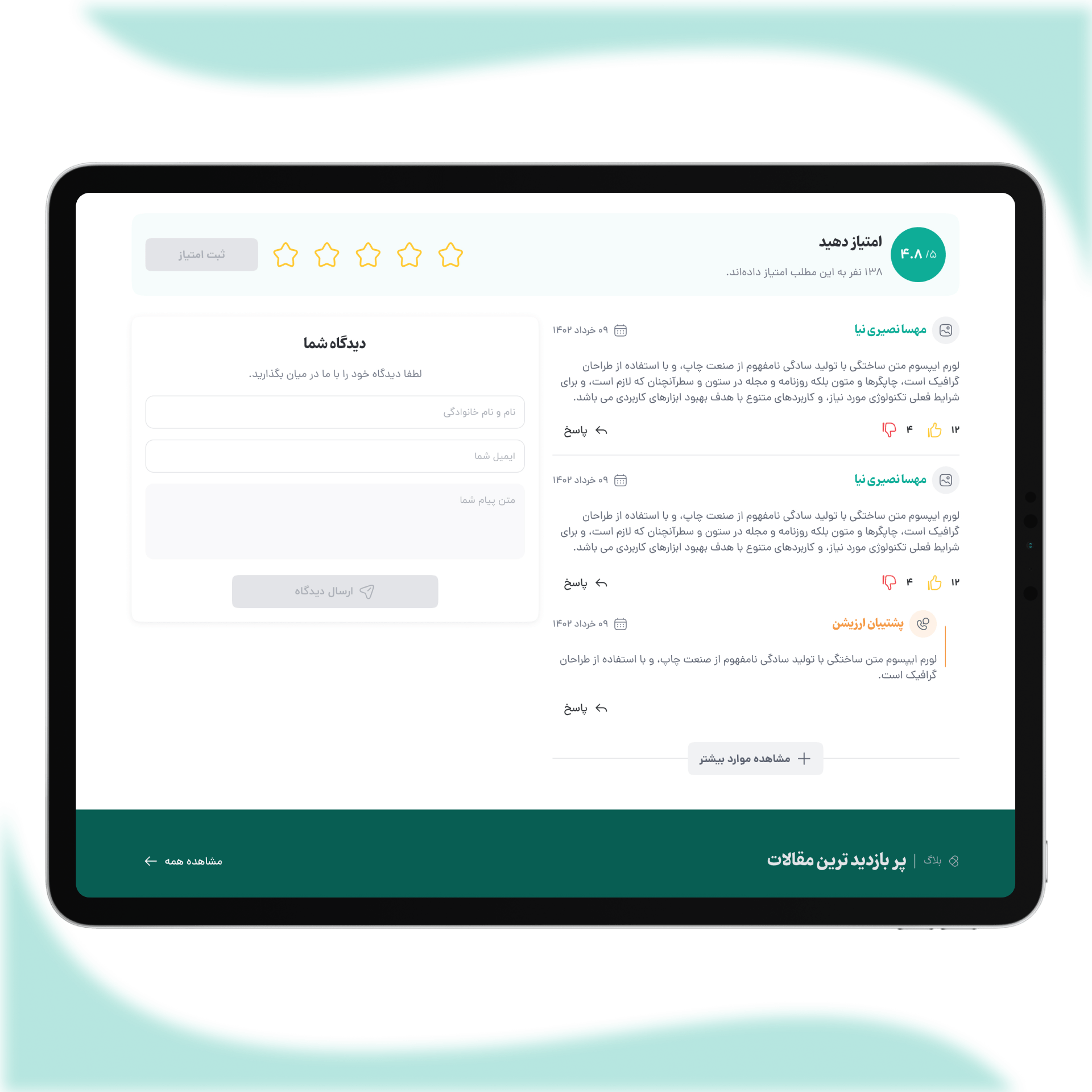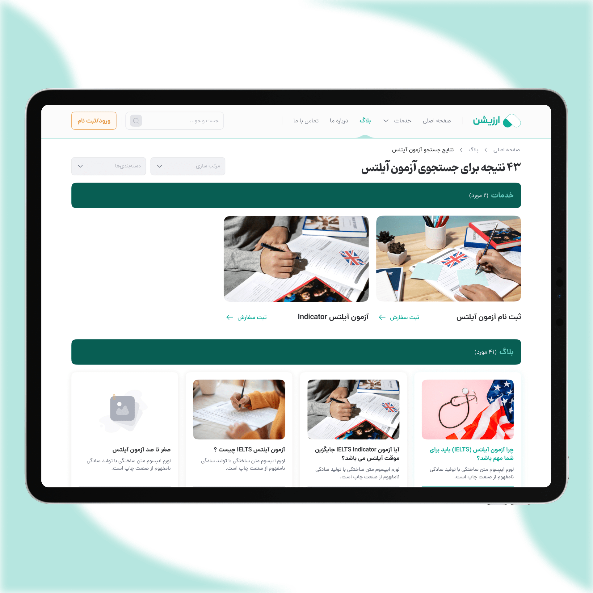 طراحی مجله برای انتشار محتوای تخصصی: بخش مجله ارزیشن با ساختار مناسب برای سئو و تجربه کاربری، اطلاعات مهمی درباره آزمونها و پرداختها ارائه میدهد.